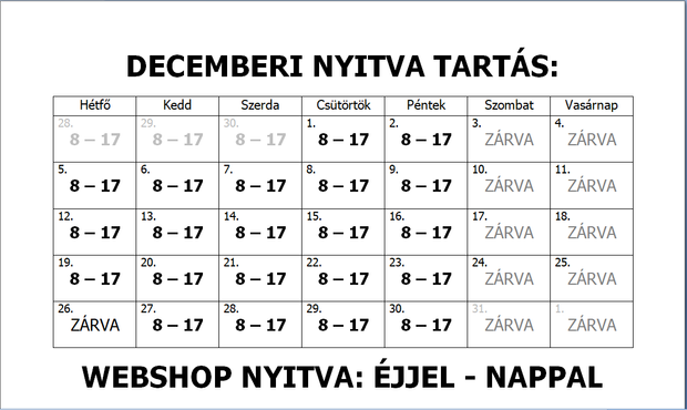 Decemberi nyitva tartás 2022